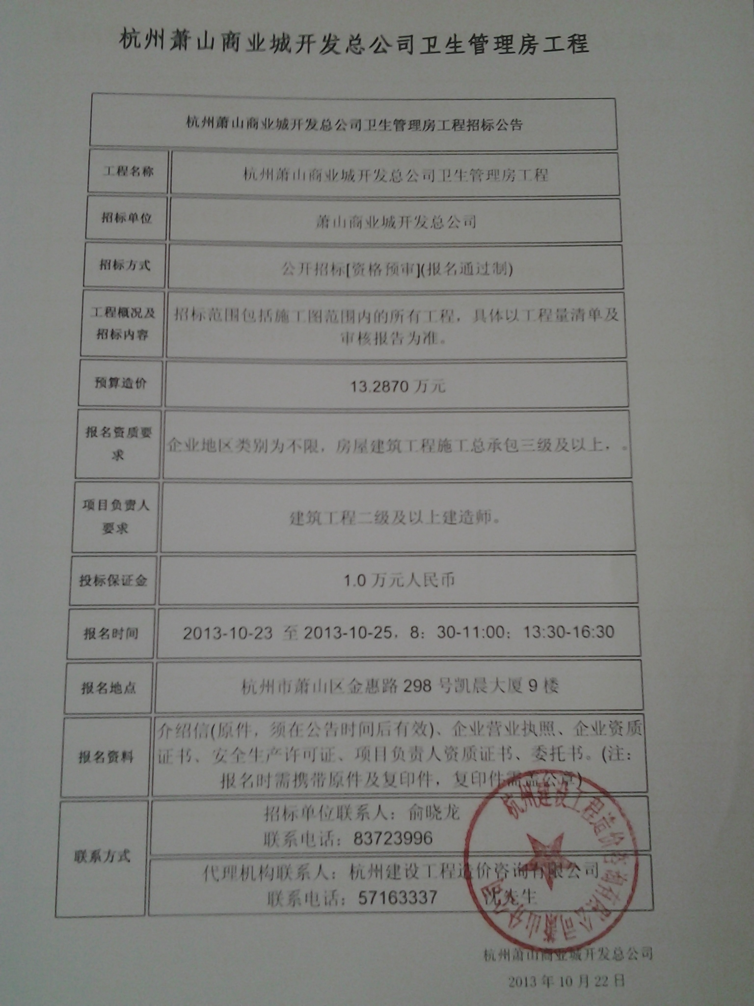 衛生管理房工程招標公告