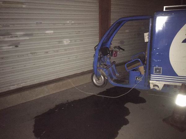 8月24日凌晨0:15,蕭山商業城警務室夜班隊員巡邏至太平洋市場商順街2號時,發現店門外停放的一輛三輪電動車正通過店內拉出來的插線板進行充電,雖然車主將充電器和插線板掩護得非常隱蔽,但是夜間私拉電線為電動車充電這一行為存在極大的安全隱患。后隊員拍照取證后將其充電器帶回警務室暫為保管并留下告知單。