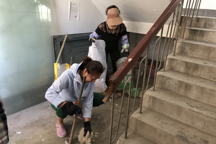 前期,商住辦工作人員對各樓道內的雜物進行了調查統計,張貼清除雜物通知,并組織樓道組長挨家挨戶下發倡議書,動員大家主動清理雜物。在清理過程中,工作人員和樓道組長冒著高溫酷暑,不怕臟不怕累,將樓道死角處堆積的床板、廢棄電器、老舊家具、建筑垃圾統統搬離,同時加強文明宣傳教育,通知在家住戶杜絕樓道內亂堆、亂放現象。