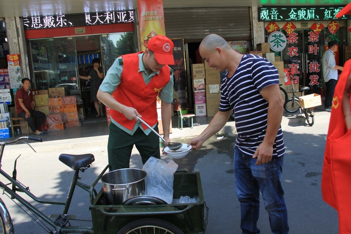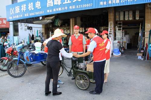 14時整,“送清涼青年志愿者”隊伍兵分兩路,前往城內(nèi)的每一條道路、每一個停車場。青年志愿者們每到一個地方,每遇見一位停車管理員,就親手把一杯杯現(xiàn)做的消暑佳品——綠豆湯分給他們喝,一杯不夠,再來一杯。同時,志愿者們還為他們送去了藿香正氣膠囊、風(fēng)油精等防中暑藥品,詢問身體狀況,鼓勵他們注意防暑降溫,保持高昂斗志,規(guī)范言行舉止,全力保障商業(yè)城的停車秩序,努力為消費(fèi)者提供良好的行車、停車環(huán)境。