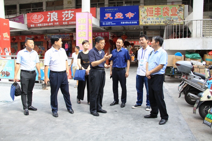 為更好的貫徹落實商務(wù)部等五部委《關(guān)于推進全國商品交易市場轉(zhuǎn)型升級指導(dǎo)意見》,調(diào)查、了解、分析全國商品交易市場轉(zhuǎn)型升級具體情況,樹立典型示范市場,8月31日,原國家工商總局企業(yè)監(jiān)督管理局巡視員徐曉東先生,中國市場學(xué)會副會長、商務(wù)部商品市場轉(zhuǎn)型升級領(lǐng)導(dǎo)小組成員朱勇毅先生,中國市場學(xué)會批發(fā)市場發(fā)展委員會副主任王燕女士,中國市場學(xué)會批發(fā)市場發(fā)展委員會招商引資部副主任張斌先生一行蒞臨蕭山商業(yè)城等大型交易市場,就市場轉(zhuǎn)型提升作考察交流。蕭山區(qū)商務(wù)局黨委委員、副局長朱志剛,蕭山商業(yè)城管委會主任、商業(yè)城開發(fā)總公司總經(jīng)理裘海洪等陪同考察。