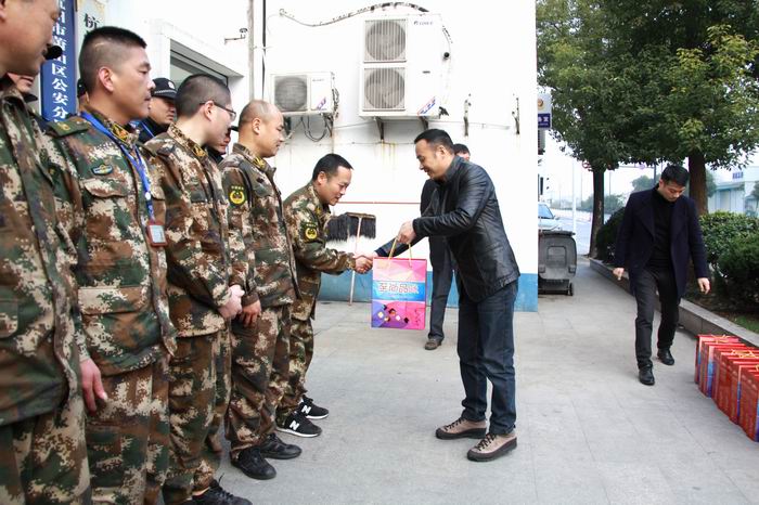 在慰問現場,裘海洪仔細詢問了基層一線隊員巡邏防范和為民服務活動開展情況。他說,綜治巡防隊員直接面對商戶群眾,擔負城市交通安全管理和維護市場正常經營秩序的重任,不分節假日堅守工作崗位。今天是農歷除夕,在這辭舊歲、迎新春的特別時刻,你們為了商業城的穩定運行,讓全城經營者和管理者過上一個平安幸福年,仍然堅守崗位,辛勤工作。為此,我謹代表商業城管委會和商業城開發總公司向你們表示親切慰問,并致以崇高敬意,你們辛苦啦。同時希望堅守崗位的一線隊員在春節期間繼續發揚無私奉獻的精神,認真履行職責,保證節日期間事關民生的各項工作順利開展,全力維護商業城的和諧穩定。