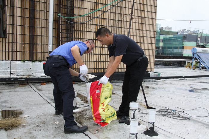 大家拿著掃帚、鐵鍬、火鉗、榔頭等工具齊心協力,發揚不怕臭、不怕累的精神,對轄區范圍內占用公共通道上堆放的雜物及亂扔在服裝市場屋頂平臺上的泡沫箱、坐便器、廢棄的床墊等臟物、衛生死角進行清掃、搬運。特別是對各下水管道上堆積的淤泥進行了鏟除,并對各堵塞的下水管道口進行了疏通,以防在“梅雨”季及臺風天等惡劣天突襲時下水通暢。本次活動共清理了大件雜物20余件、垃圾70多袋。