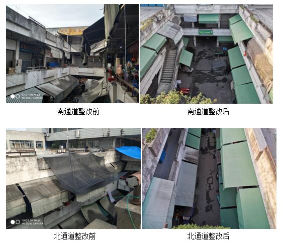 特別是在雨棚隱患消除中,因市場(chǎng)雨棚已使用10余年,年久失修、破舊不堪,不少雨棚僅依靠幾根繩子綁在護(hù)欄上維持使用,隨風(fēng)擺動(dòng)、搖搖欲墜。這不僅影響市場(chǎng)的環(huán)境面貌,更是存在著嚴(yán)重的安全隱患。為此,市場(chǎng)管理員積極與經(jīng)營(yíng)戶協(xié)商溝通,要求經(jīng)營(yíng)戶更換破舊雨棚,由市場(chǎng)管理辦公室聯(lián)系施工人員,更換同一顏色、同一規(guī)格的雨棚。在市場(chǎng)的努力下,該工作得到了眾多經(jīng)營(yíng)戶的大力配合,目前已更換一至三樓南北通道破損、存在隱患的雨棚共計(jì)25個(gè),市場(chǎng)環(huán)境面貌得到了很大改善。