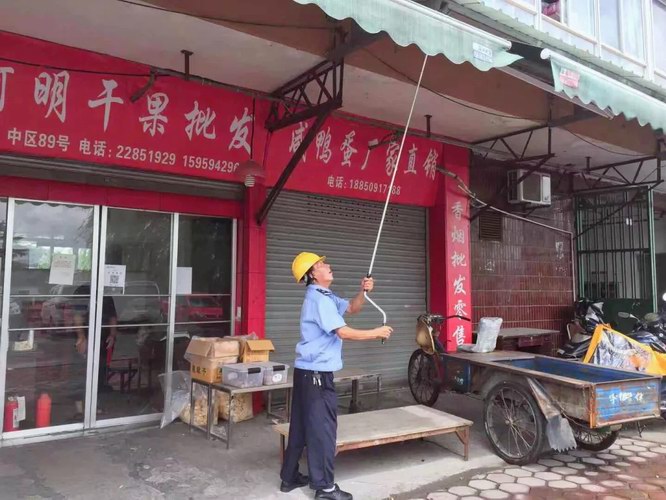 各市場通過微信群,發送“利奇馬”臺風動向,布置防臺各項工作。做到全面排查,安全隱患一個不漏。全城管理人員深入轄區市場、倉庫、商住樓、工程低洼地,對危舊房、消防設施、商城河堤排水設施、在建工程設施等開展全面檢查,落實專人嚴格巡查,及時排查安全隱患,并按照防臺應急預案,落實好搶險隊伍和救災物資,嚴防不測。同時,檢查了各個排水管,清理屋頂下水口、下水道積水,排查施工現場安全隱患,排查戶外廣告、雨棚安全隱患,排除高空墜物等安全隱患。