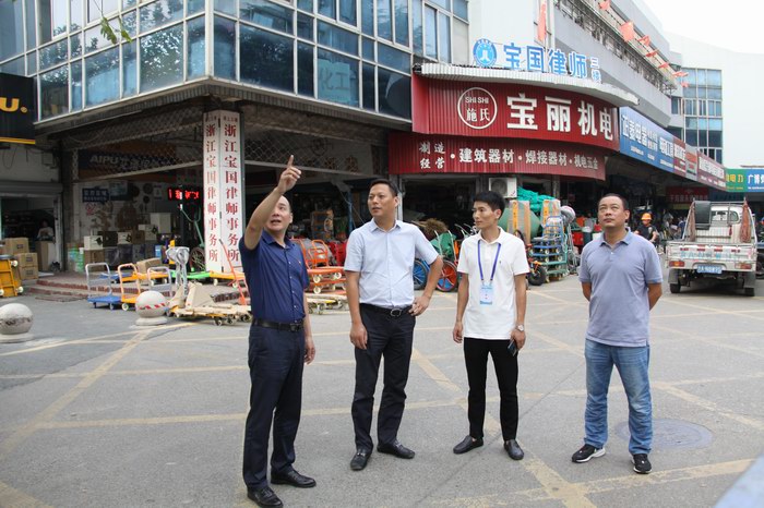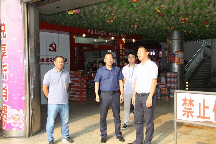 夏國燕實地考察了商業城副食品市場、五金市場、建材市場等各大專業市場,詢問管理現狀,了解經營狀況。同時,參觀了商業城黨員先鋒服務點。隨后,聽取了商業城黨總支書記、總經理裘海洪對商業城基本情況、當前管理工作以及目前商業城管理發展中存在的問題進行簡要匯報。