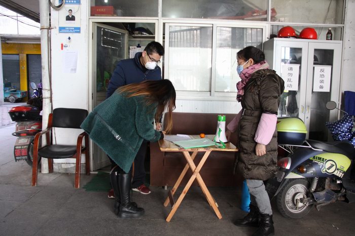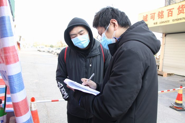 2月1日一早,在商業城7個管控點,都有黨員干部挺立在寒風中,與其他執勤人員一起,對進出住宅小區的車輛、行人認真盤查、測溫、登記,把好關口,防止疫情傳播。