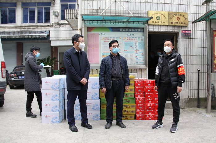 疫情牽動(dòng)著商戶的心,2月4日上午,杭州龍昌食品有限公司向蕭山商業(yè)城管委會(huì)、開發(fā)有限公司捐贈(zèng)了娃哈哈礦泉水、八寶粥和方便面各40箱。