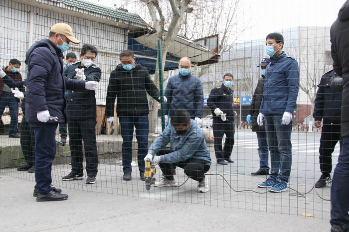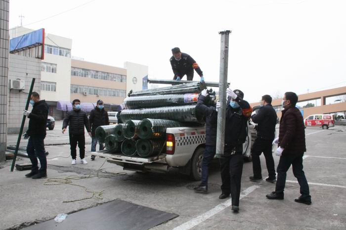 區(qū)城投集團(tuán)黨委委員、副總經(jīng)理夏國燕指導(dǎo)封路施工,在對商業(yè)城內(nèi)各個路口進(jìn)行實地勘察后,忙碌又緊張的封路工作開始了。由于時間緊迫,商業(yè)城調(diào)動全體干部職工加入封路行列,眾志成城,凝心聚力,打樁、攔網(wǎng)、掛橫幅,從白天到黑夜,歷經(jīng)6個小時的高強(qiáng)度作業(yè),終于完成了21個路口的封閉工作。