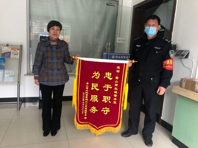 為了感謝警務室隊員,在商業城商聚街開店的趙女士待商業城復市后,專程制作一面錦旗送來,以表感恩之情。