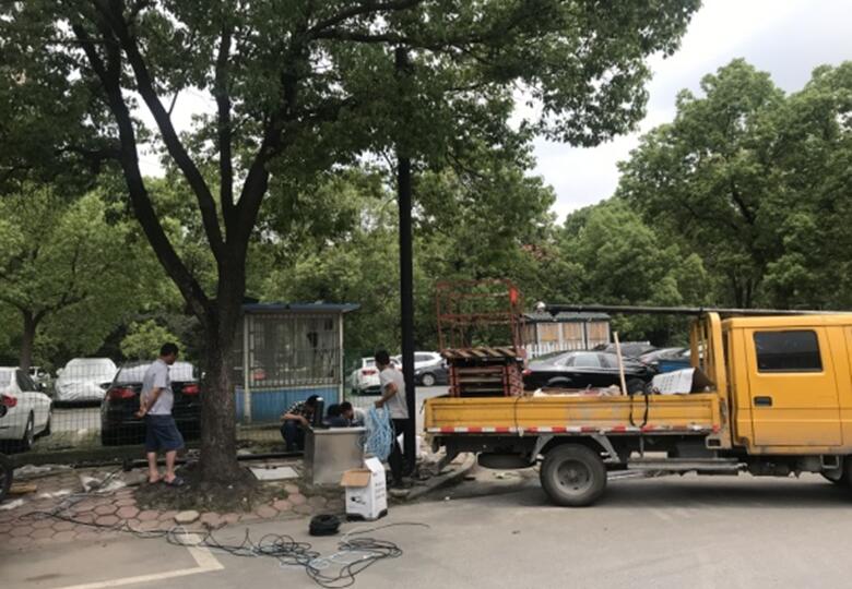 其中5處存在較為嚴重的安全隱患及設備問題,根據實際情況做出更改更換,服裝市場東大門主桿和西大門樓頂主桿移至對應墻面做挑桿并更換電源線極視頻線,建材市場東北角商惠街路口主桿和生態停車場南門主桿由于腐蝕嚴重,整根桿子換掉做立桿及基礎,包括主桿,挑桿,攝像頭,電源線及視頻線等,建材市場西北角更換攝像頭,電源線及視頻線。
