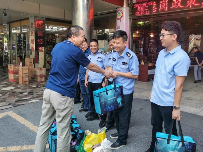 商業城黨總支書記、總經理裘海洪來到綜合治理巡防大隊,慰問堅守在烈日下的公安、交警、城管、消防隊員。裘海洪對他們不畏炎熱酷暑,勇戰高溫、堅守崗位的辛勤付出表示感謝,并叮囑他們要做好防暑降溫工作,合理調整作息時間,避免疲勞作業,以更好的姿態為商業城的安保維穩貢獻力量。
