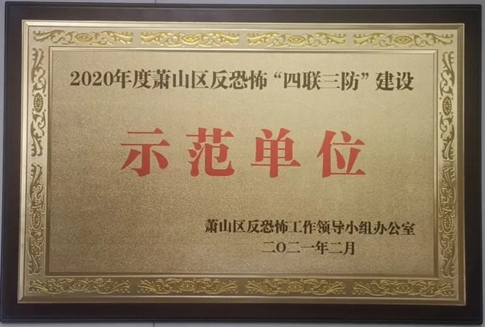 近期,蕭山商業城被區反恐怖工作領導小組辦公室評為2020年度蕭山區反恐怖“四聯三防”建設“示范單位”,這是在安全管理上斬獲的又一項榮譽。
