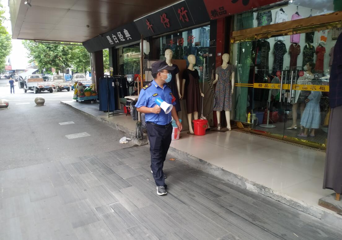 全國部分地區疫情形勢嚴峻,為積極做好蕭山商業城疫情防控工作,連日來,商業城城管分隊全體隊員與市場管理員一起,加強對廣大經營戶的防疫宣傳工作,懷著對經營戶負責、對市場負責、對商業城負責的初心,筑牢防疫安全防線。
