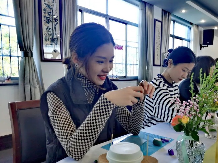 在王老師的示范教授下,一塊塊面粉團(tuán)經(jīng)過女神們的精心制作,漸漸有了形狀和輪廓,手起板落,耗時一個多小時,一個個生動可愛的亞運會吉祥物躍然臺上,一幕幕溫馨而有愛的畫面,散發(fā)出濃烈的幸福感。