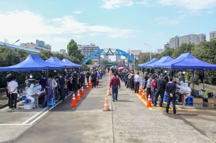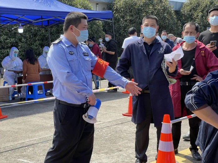 干部職工、一線管理人員、志愿者負責現場引導和秩序維護,提醒群眾做好信息登記、自覺戴好口罩、保持安全距離,共同做好檢測保障工作。