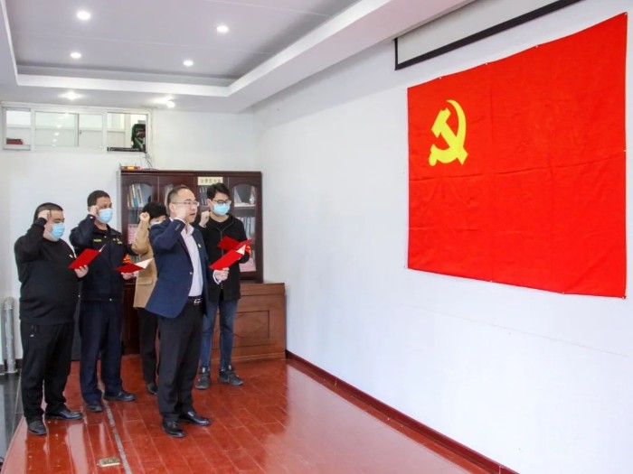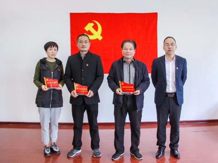 在莊嚴的黨旗下,陳聰帶領2、3月份入黨的4名黨員同志重溫入黨誓詞,并送上生日賀卡,讓大家時刻不忘自己的“第一身份”,把身份意識融入到做好實事之中,做一名新時代合格的共產黨員。