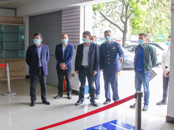 來波平一行前往商業(yè)城進(jìn)口商品集中監(jiān)管倉進(jìn)行實(shí)地考察,仔細(xì)詢問了解進(jìn)口商品管控相關(guān)工作情況。來波平在聽取相關(guān)匯報(bào)后,對商業(yè)城防疫工作給予了充分肯定,并對下階段工作提出三點(diǎn)要求: