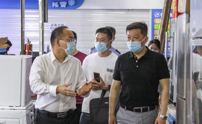 陳惠斌一行前往商業城新世紀舊貨市場和服裝皮革市場進行檢查工作。