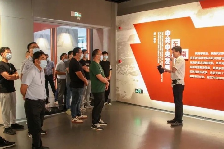 聆聽革命故事、牢記烽火歲月。24日,商業(yè)城公司黨總支參觀了新四軍兩渡富春江紅色研學(xué)中心。中心以新四軍兩渡富春江為時間軸,用場景復(fù)原、實(shí)物展示、多媒體影片、互動展項等現(xiàn)代聲光電技術(shù),展示了新四軍在浙江的戰(zhàn)斗歷程,展示了金蕭支隊斗爭、蔣忠烈士犧牲等相關(guān)歷史事件。