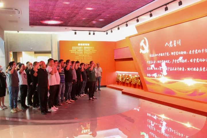 重溫入黨誓詞。在商業(yè)城公司黨總支書記陳聰?shù)膸ьI(lǐng)下,全體黨員在莊嚴(yán)肅穆的研學(xué)中心前廳重溫入黨誓詞,句句鏗鏘的誓言叩響了黨員們的入黨初心。