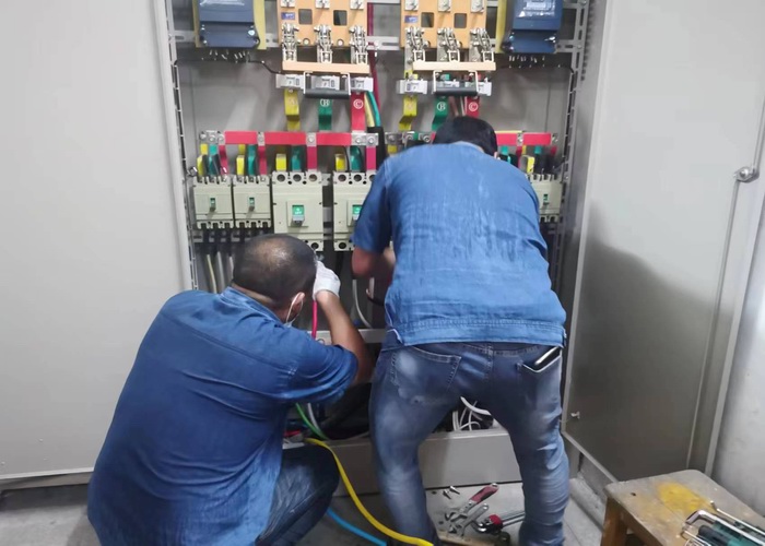 因市場線路陳舊、設備老化,對設備更換工作帶來了一定的難度,綜合部副經理沈立與水電工們耐心的對電氣設備進行檢測,仔細的拆裝電線、接觸器、空氣開關等設備零件,保證換新設備正常運轉并處于良好的狀態,經過為期一周的辛勤工作,順利完成了各市場電器設備換新。