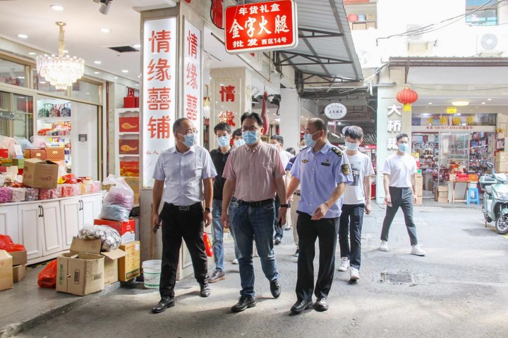 為確保國慶期間各項疫情防控工作落實到位,9月30日,杭州市市場監(jiān)管局黨委委員、市市場監(jiān)管綜合行政執(zhí)法隊隊長汪曉敏一行赴蕭山商業(yè)城華東副食品市場開展“無疫單元”建設驗收工作,區(qū)市場監(jiān)管局黨委副書記王莉敏、南站所所長王志敏,商業(yè)城公司黨總支書記、總經(jīng)理陳聰?shù)扰阃?/span>