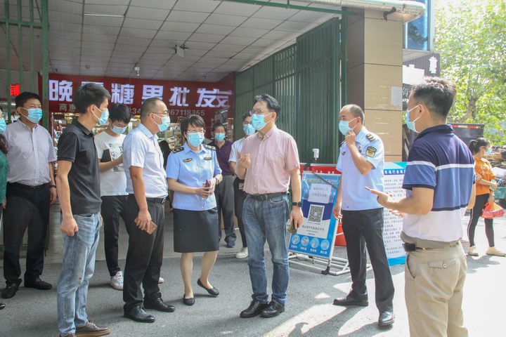杭州市市場監(jiān)管局黨委委員、市市場監(jiān)管綜合行政執(zhí)法隊隊長汪曉敏一行赴商業(yè)城華東副食品市場開展“無疫單元”建設驗收工作