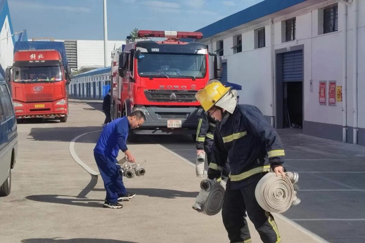 此次演練從現(xiàn)場報警到消防隊到達現(xiàn)場戰(zhàn)斗展開,鋪設(shè)水帶、出水、直到戰(zhàn)斗結(jié)束,檢驗消防隊隊員的出警、戰(zhàn)斗展開撲救隊員之間的配合及熟練程度。