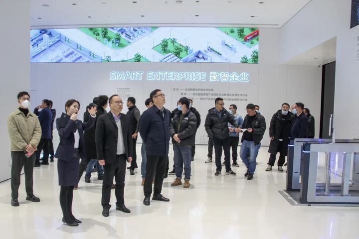 隨后,來到位于濱江的浙江大華技術股份有限公司,參觀人員在現場工作人員的陪同和講解下,觀摩了大華公司各類產品展廳,悉心聽取了機器視覺、視頻協作、智慧消防、智慧儲存、智慧顯示、智慧控制等各門類產品的技術構成及推廣應用情況。