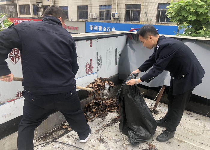5月8日,市場積極響應“早謀劃、早部署、早預防”的防汛方針,對商樂街等容易產生積水的屋頂統一進行了清理,有效預防在汛期到來時出現漏水以及堵塞現象,同時對市場路面窨井進行檢查,發現堵塞情況,立即現場進行疏通,此次防汛工作共計清理垃圾0.3噸,疏通下水口8處,排查窨井9處,大大減少了汛期風險,為市場安全穩定打下了堅實的基礎。