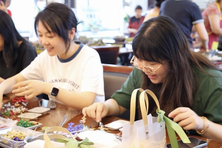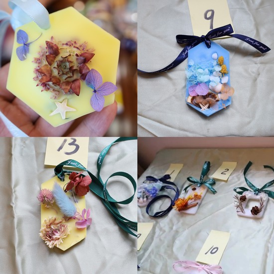制作完成后,大家將自己制作的香薰掛件進行展示。