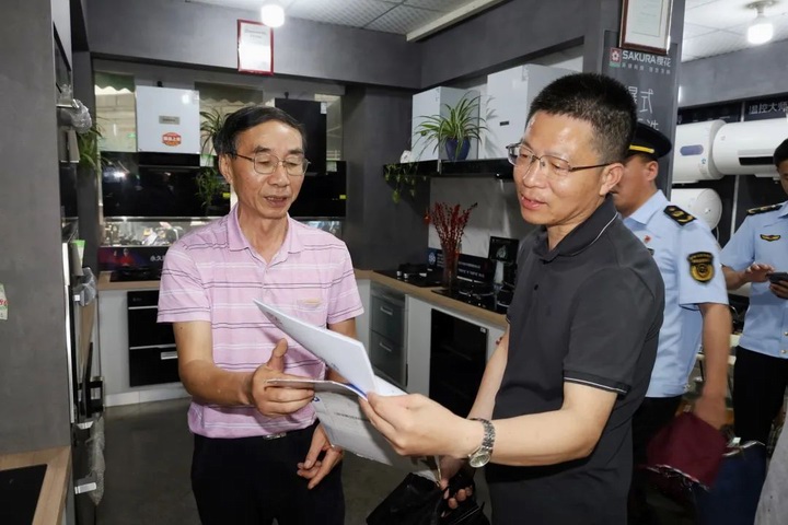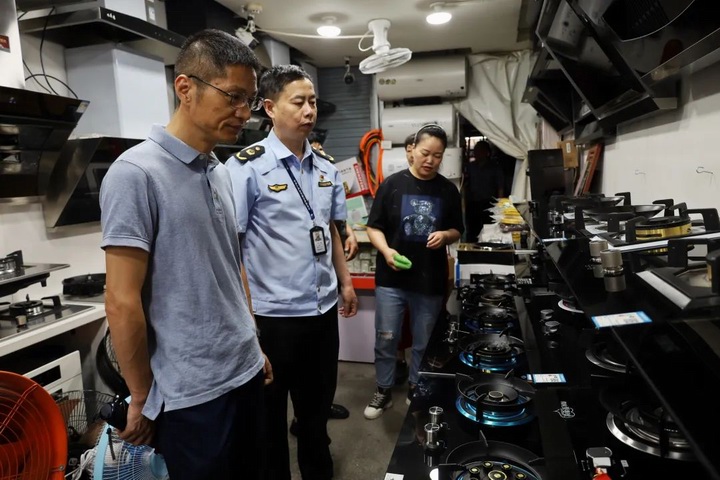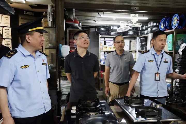 杭州市市場監管局產品質量安全監管處處長徐玉祥一行赴蕭山商業城開展燃氣灶具產品質量安全檢查