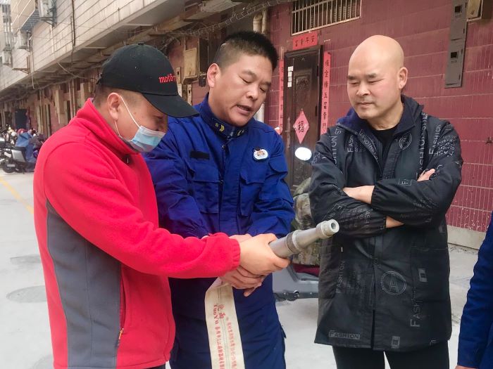 本次培訓演練市場特別邀請了商業城專職消防隊兩名消防員作為主講。培訓開始后,消防員結合商戶日常經營活動,詳細講解了滅火器使用方法、注意事項,以及火災危害、預防措施、初期火災撲救方法和火場疏散逃生基本要領,并進行了動作示范。除此之外還進行了消火栓連接水帶出水的實操演練。