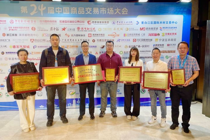 在大會上,蕭山商業城被授予“全國商品交易市場文明誠信經營示范市場”榮譽稱號;副總經理戚立新被授予“全國商品交易市場管理創新標兵”;黨總支委員、副總經理來佳靖,總經理助理金利兵被授予“全國商品交易市場優秀管理者”。