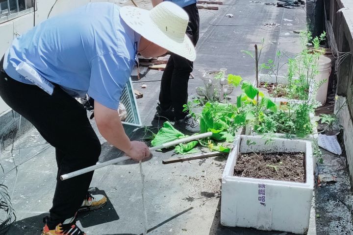 清理現場,大家分頭搬花盆、運走泡沫蔬菜箱子,樓頂的公共空間又恢復了以往的開闊和整潔。接下來,市場將加大對違規占用公共空間種植蔬菜、私自建立菜園等行為的監管力度,確保市場公共區域環境整潔。
