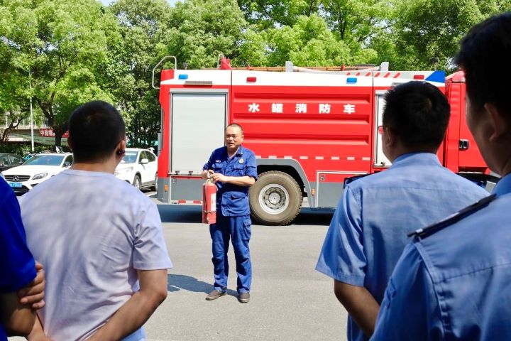 參訓人員到位后,公司現場指導員圍繞消防基礎知識、滅火基本原理、逃生自救方法、防火常識等內容進行了知識講解,并對演練項目進行了動作要領解析和實戰操作示范。