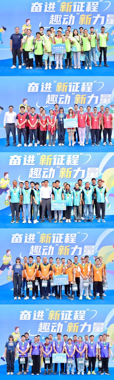 經(jīng)過緊張刺激的比拼,根據(jù)各隊(duì)最終積分情況,決出了趣味運(yùn)動(dòng)會(huì)的全部獎(jiǎng)項(xiàng)。頒獎(jiǎng)儀式上,各隊(duì)紛紛與頒獎(jiǎng)?lì)I(lǐng)導(dǎo)合影留念。