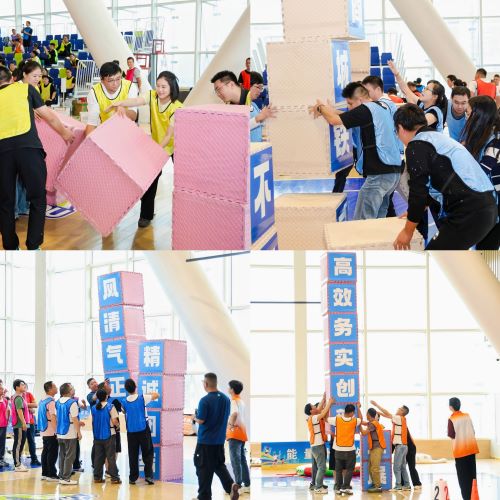 本次賽事共有8支代表隊(duì)參賽,每隊(duì)15人,由公司員工和市場經(jīng)營戶代表聯(lián)合組隊(duì)。比賽設(shè)置7個(gè)精彩項(xiàng)目:勇攀高峰、同心協(xié)力、精益求精、燃脂轟炸機(jī)、快樂向前沖、拔河、乒乓球決賽。賽事通過個(gè)人項(xiàng)目與團(tuán)體項(xiàng)目的均衡配比,既展現(xiàn)拼搏進(jìn)取的體育精神,又強(qiáng)化跨部門協(xié)作能力。同時(shí)將健康管理理念融入企業(yè)文化,實(shí)現(xiàn)趣味性、競技性與文化傳播的深度融合。